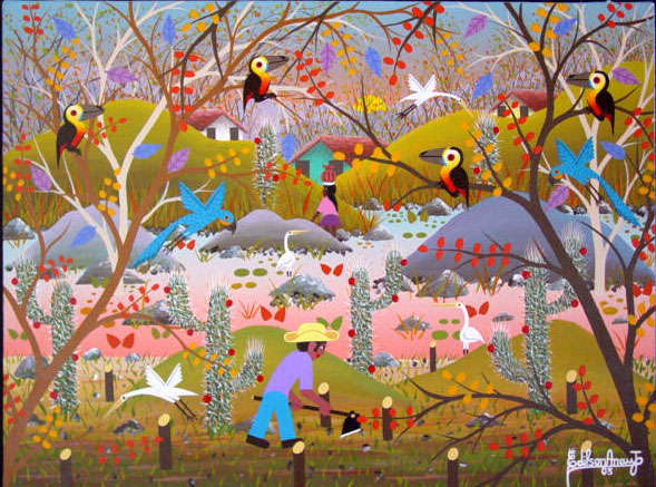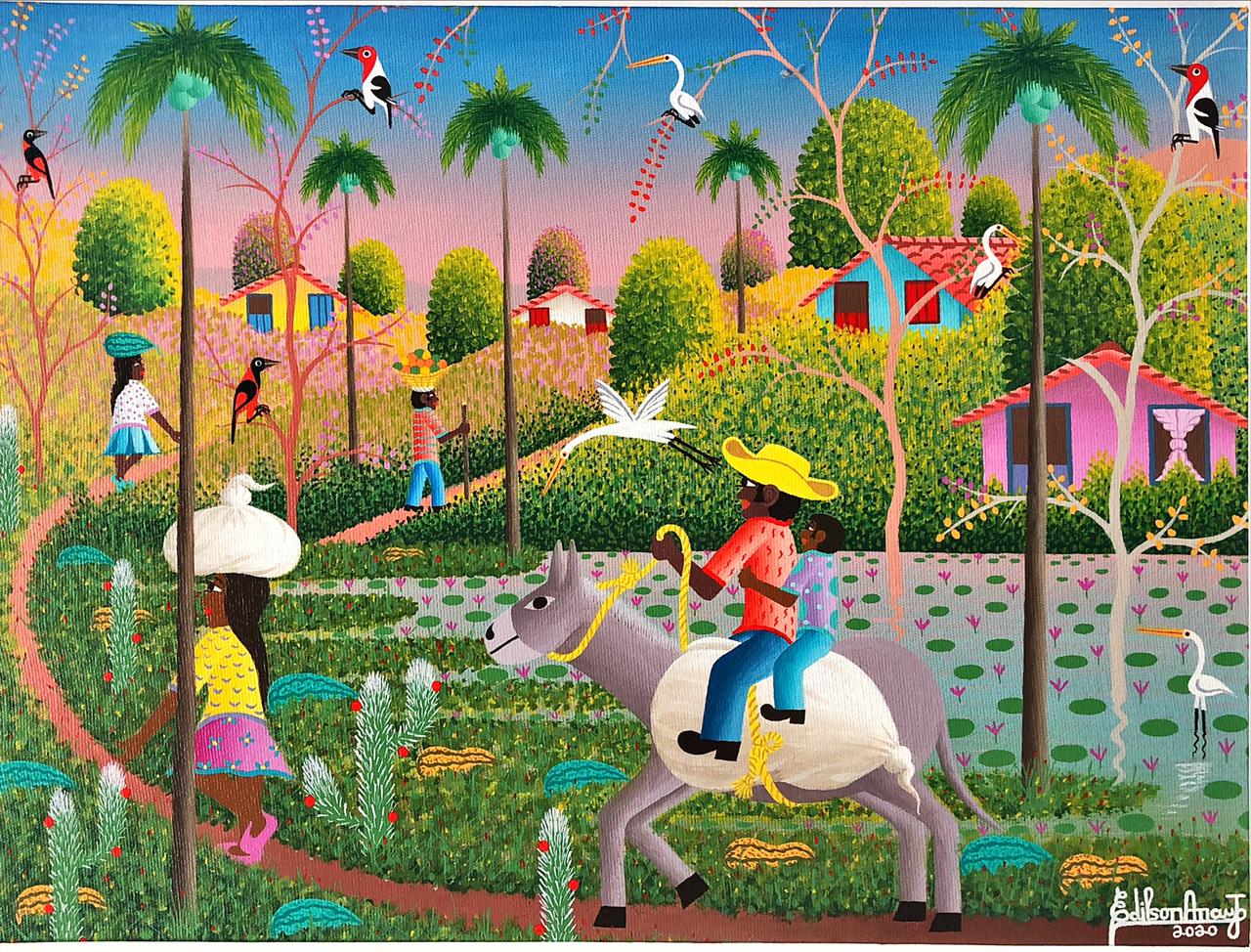 Nascido no sítio de São Roque em Ouro Branco – Jardim do Seridó – RN. Edilson Araújo passou sua infância na caatinga e cerrado nordestino e aos sete anos começou a manifestar a sua facilidade e desejo em desenhar. Ao completar 19 anos vem para São Paulo com o intuito de estudar desenho publicitário e trabalhar em uma grande empresa. Em 1974 se casa com Iracema, sua noiva, que deixou no nordeste enquanto conseguia se estabilizar na capital. Com o propósito de conciliar trabalho e estudo, prestou concurso nos Correios e se tornou carteiro. Em 1980 pinta sua primeira tela “O pagador de promessas”, e desde então decidiu dedicar-se integralmente as artes. Com seu estilo Naif as pinturas sobre óleo foram ganhando destaque. Conheceu, então, o artista plástico Dirceu de Carvalho que ficou impressionado com seus traços e disse para ele seguir pela arte Naif. Com sua ajuda entrou para o Primitivismo. Começa assim a participar de vários eventos em São Paulo e ganhar premiações. Prova do seu real talento. Em 1984/1985 foi convidado pelos Correios a criar cartões de Natal, selos e aerogramas. Nessa época decidiu mudar sua pintura para acrílico sobre tela e assim consagrou-se como paisagista. Tem várias participações em livros didáticos, possui obras em cinco continentes e expõe seus quadros em algumas galerias brasileiras. Hoje pai de dois filhos e avô de três netos, ainda vive em São Paulo. Porém sente-se muito ligado ao Nordeste, fonte constante de sua inspiração